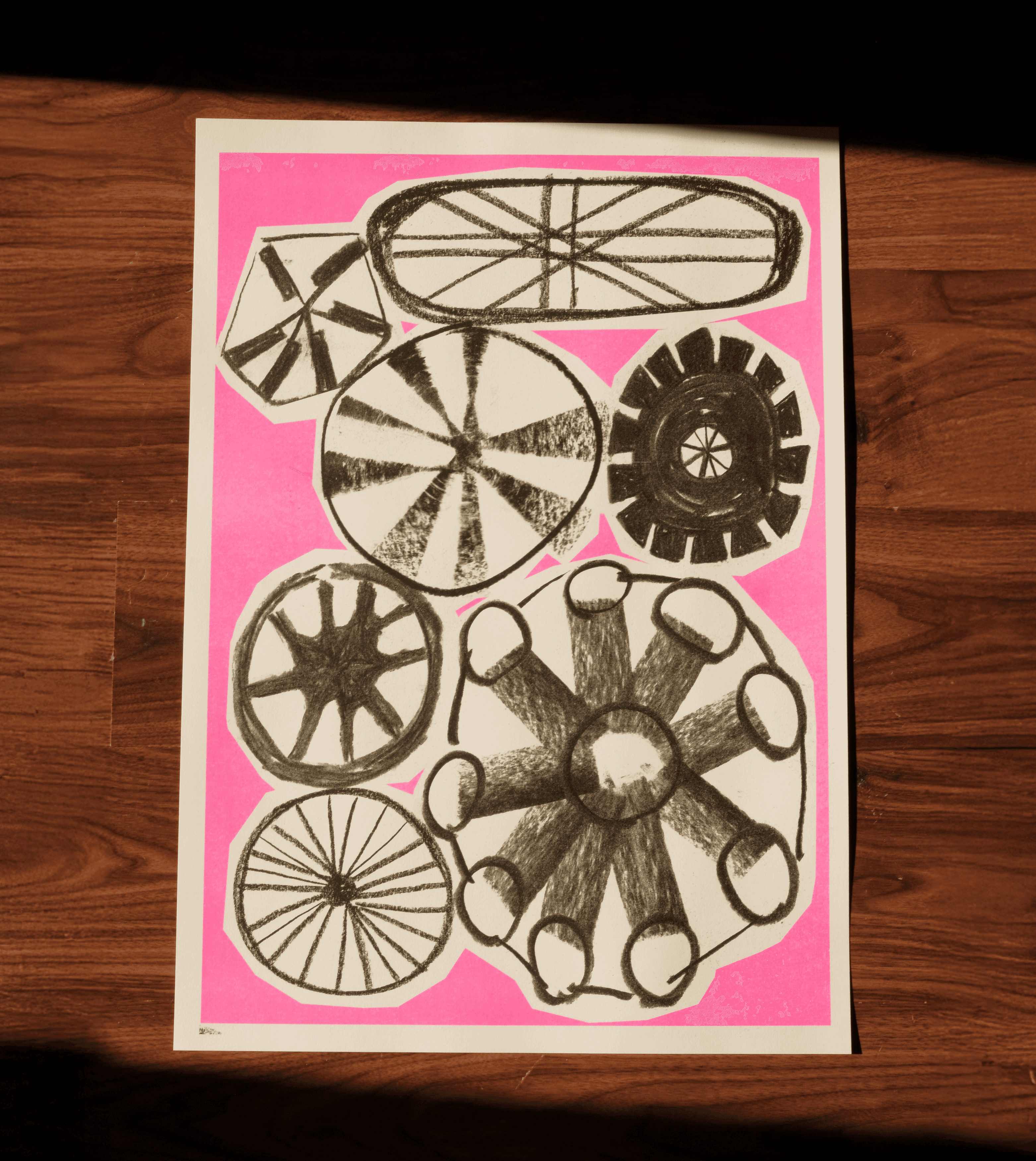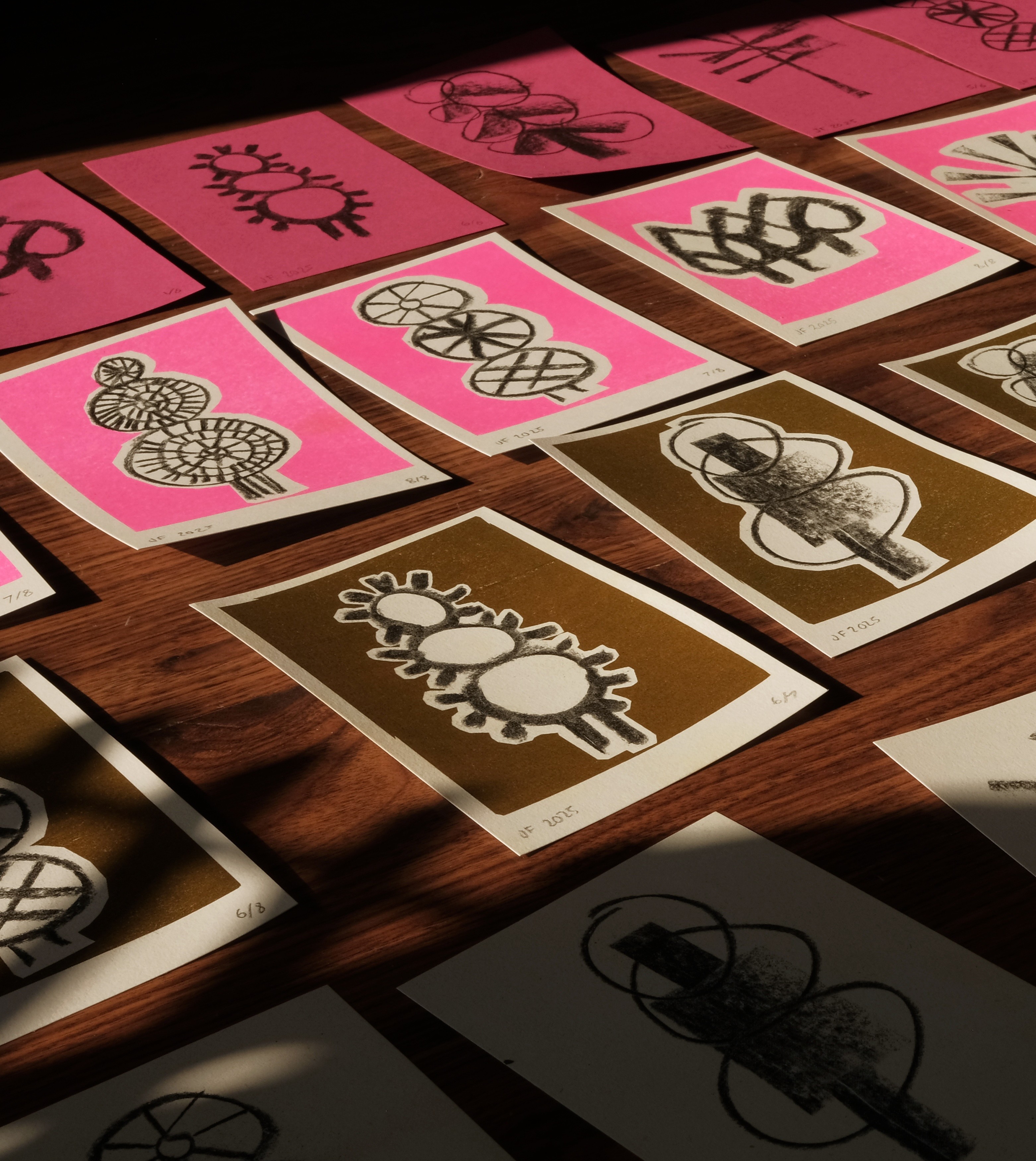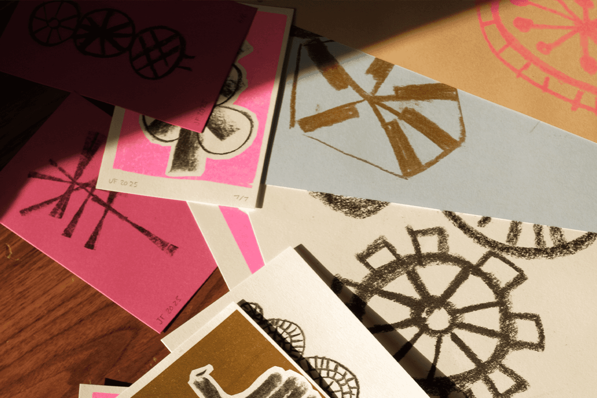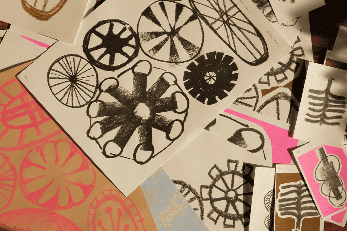 Riverlight Festival is a free, community-led arts celebration in Sleaford that brings the town's rural heritage and local folklore to life. The 2025 edition centered on Circles, Cycles and the Summer Solstice—drawing from medieval water mills, seasonal rhythms, and the area's agricultural roots. Working with Ashleigh Armitage, I created charcoal illustrations and animations of waterwheels, suns, and circles that captured the festival's folk spirit and cyclical themes. The hand-drawn aesthetic felt grounded and tactile—connecting to traditional craft while working across digital formats. The visuals were used across event materials and social content, then used for screen printing workshops run by Dizzy Ink, turning the festival's identity into something the community could make and take home.